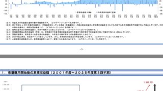 時事問題 GPIF、年平均収益率4.71% 年金積立金管理運用独立行政法人(GPIF)の2025年度第3四半期の運用状況が公開され、収益率は5.84%(期間収益率)で収益額は16兆1,878億円でした。2001年度の自主運用開始以降の年平均収益率は4.71%で、累積収益額は196兆3... 2026.02.16 時事問題株式投資の心構え株式長期投資