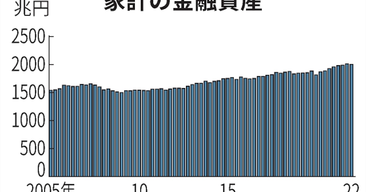 こんにちは、でんです。日銀が27日発表した賃金循環統計で、2021年度末の個人(家計部門)の金融資産は前年度末比2.4%増の2,005兆円と年度末で過去最高を記録しました。半数超を占める預貯金の伸び率が鈍化する一方で、投資信託が10%強を占めました。日経電子版で27日夜、報じられました。依然として現金・預金が1,088兆円で54.3%を占め、米国の1割、欧州の3割を大きく上回っています。とはいえ、長期的視点で積み立て型少額投資非課税制度(つみたてNISA)対象の低コスト全世界株、全米株、S&P500、先進国株のインデックス型投資信託への投資が中心ならば、いい傾向だと思います。