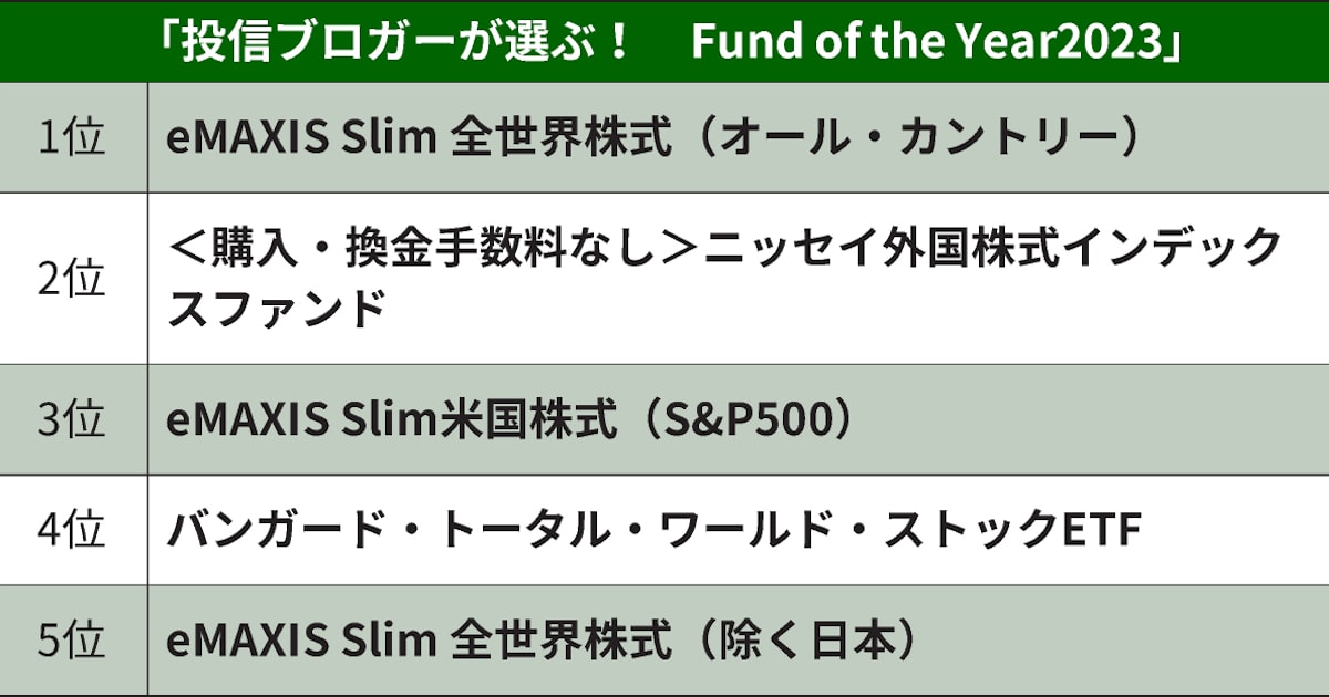こんにちは、投信ブロガーが選ぶ! Fund of the Year 2023(ファンドオブザイヤー)で、eMAXIS Slim 全世界株式(オルカン)が圧倒的大差で5連覇を達成した結果や座談会、表彰式、懇親会の様子が日経電子版で報じられました。編集委員田村正之氏の署名記事で、上位10投資信託のうち、いずれも低コストの全世界株式型と日本除く先進国株式型がそれぞれ3本ずつと人気を集めたと述べています。さらに、会場にいた多くの投信ブロガーや投資信託専門家、表彰された運用会社の関係者の多くが1日に死去した経済評論家山崎元氏を悼んでいたと明かしました。今の「長期・分散・低コスト」の大原則を満たす優良インデックスファンドが少しずつ知られ、根付きつつあるのは山崎氏の大きな功績だと思います。改めてお悔やみ申し上げます。