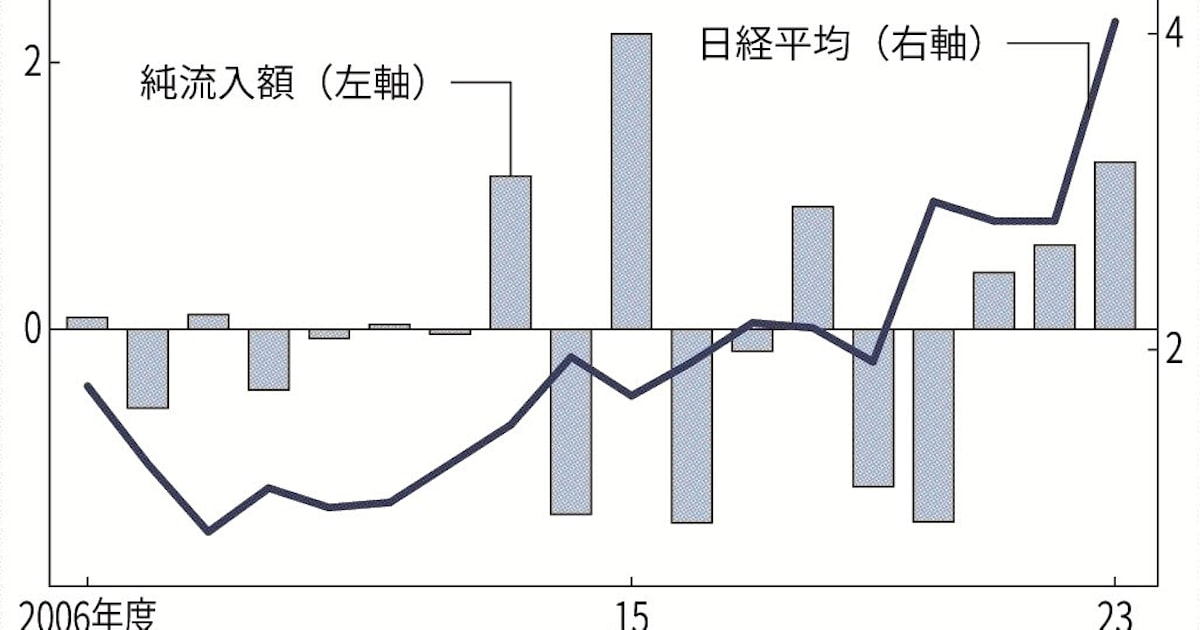 個人マネーが投資信託に流入している。投資信託協会が11日発表した投信概況によれば、2023年度の公募投信への純流入額(購入から解約などを引いた値)は13兆円を超え、過去最高だったった。身近な物やサービスの価格が上がるなか、現預金の実質価値の...