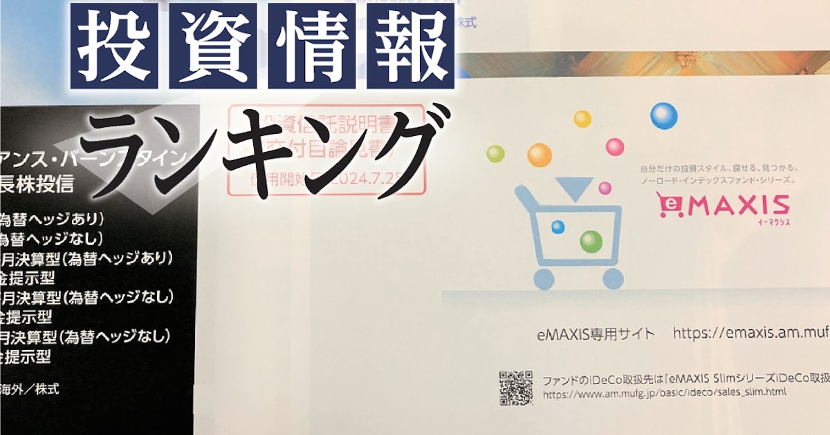 個人の資産形成の手段として定着した投資信託。純資産総額(残高)が1兆円を超える商品は、2024年9月末で9本と過去最多となった。全てが海外株で運用するファンドで、株高や中期的な円安傾向を背景に個人マネーが流入した。低コストのインデックス(指...