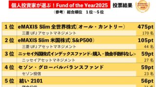 株式投資の心構え オルカン7連覇 個人投資家が選ぶFund of the Year 2025の投票結果が発表され、インデックス投資部門でeMAXIS Slim 全世界株式(オルカン)が475ポイントと2位に4.5倍超の大差をつけ1位となりました。アクティブ部門と合わせたトー... 2026.01.25 株式投資の心構え株式長期投資