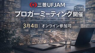 株式投資の心構え 三菱UFJAM、ブロガーミーティング募集 三菱UFJアセットマネジメント(三菱UFJAM)は3月4日午後7時から、東京都港区東新橋の三菱UFJAM本社でブロガーミーティングを開催します。三菱UFJAMが発表しました。内容は①「個人投資家が選ぶ!Fund of the Year 20... 2026.02.17 株式投資の心構え株式長期投資