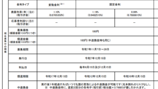 株式投資の心構え 個人向け国債変動10、金利年1.10% 7日から28日まで募集されている2025年12月15日発行の個人向け国債変動10年(変動10)の金利が年1.10%(税引後年0.8765350%)に設定され、前回比で年0.02ポイント上がりました。算定基準となる10年国債金利(長期金利)が... 2025.11.08 株式投資の心構え株式長期投資