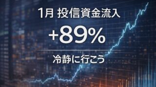 株式投資の心構え 1月の投信流入前月比89%増 投資信託協会の1月の投信概況で、上場投資信託(ETF)を除く公募株式投資信託の設定額から解約や償還額を差し引いた資金流入額は前月比89%(1兆2,959億円)増の2兆7,507億円でした。日経電子版が報じました。報道によると、1年ぶりに過去... 2026.02.19 株式投資の心構え